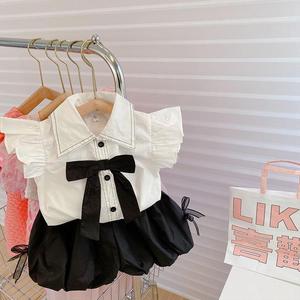 女児童装2025夏セット子供女赤ちゃん半袖韓国服小飛袖半ズボン2点セット