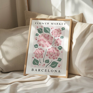 ピンクの小さな新鮮な水彩イラスト風花市場リビングルーム寝室ポスターキャンバス絵画装飾絵画コアフレームレス