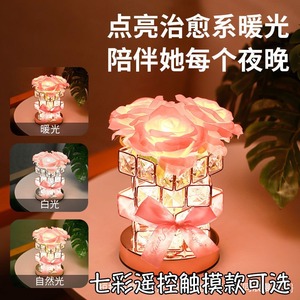 クロスボーダー充電式ローズクリスタル装飾テーブルランプ、七色のロマンチックな雰囲気ランプ、女の子への七夕やバレンタインデーのギフトに