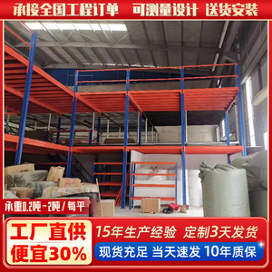 屋根裏サンドイッチ電気商倉庫は二階屋根裏プラットフォームの耐力棚階段棚の大型倉庫棚を建設する