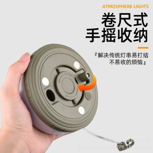 国境を越えた新しい雰囲気のLEDキャンプランプUSB充電式屋外テントカラフルなストリングライト、巻尺収納キャンプランプ付き