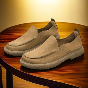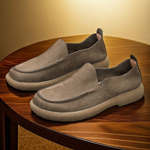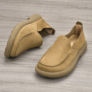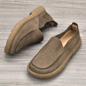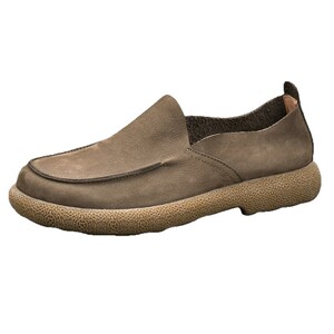 夏の通気性の大きい靴の男性のカジュアルな本革の肥満の広い足の柔らかい底の手の単層の牛革は男性の靴を漕ぎます。