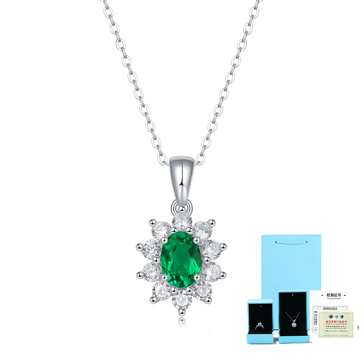 クロスボーダーS925シルバージュエリー欧米彩宝育成祖母緑ペンダント軽豪華ジュエリー鎖シンプルネックレス女