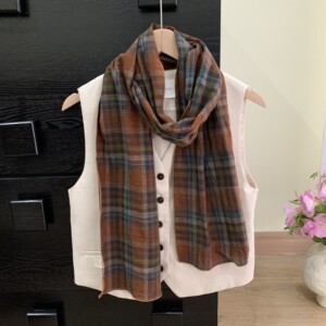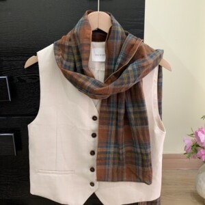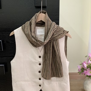 棉麻格子!文艺复古格子围巾秋冬季 日系百搭护颈细长小丝巾女
