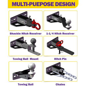 トレーラーレシーバー ユニバーサル多機能チェーンスロット 頑丈なボルト 芝刈り機ハーネス装置 トレーラーフックレシーバー