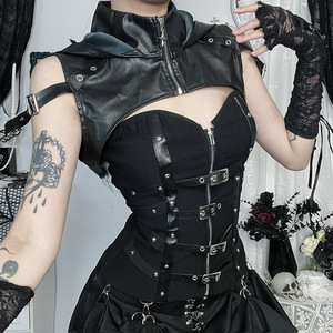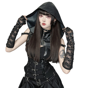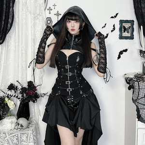 CF25076暗黒ゴシック風サイボーレザーフード付きブラウス2025新型個性街頭百合上着女