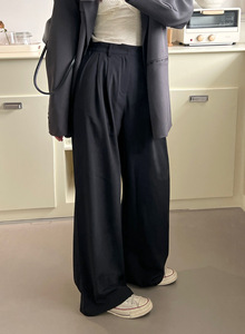 觅定 灰色西装裤女春季阔腿裤直筒裤垂感感休闲长裤春秋裤子