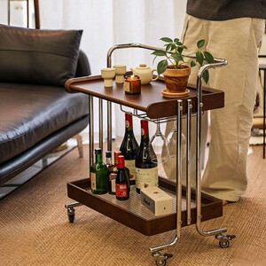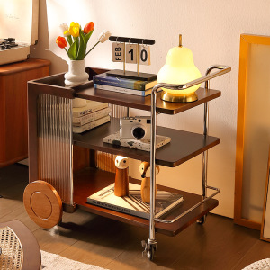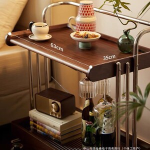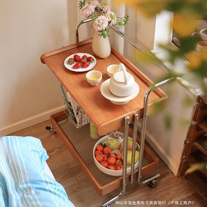 中古の木のお茶のいくつかの移動可能なソファーの辺のいくつかの胡桃の色のレトロなサイドキャビネットの客間の小さい車のベッドの棚