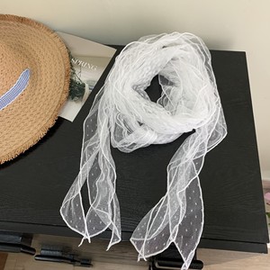 超仙レースのヘアバンドの女性は長いスカーフの蝶結びの森系の甘い髪を縛って長いスカーフのひもを持っています。