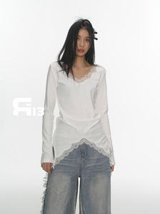 R13 Thirteen Lines 25 春夏アメリカンホットガールニッチデザインフリップサスペンダーレースボトム長袖Tシャツ8356