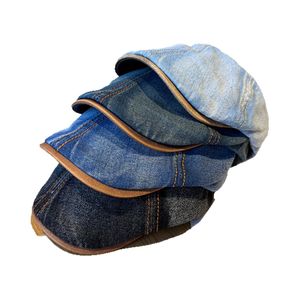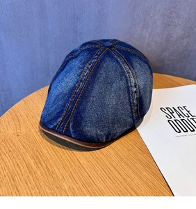 2025新款美式牛仔复古明线皮檐前进帽女鸭舌帽贝雷帽报童帽子潮男