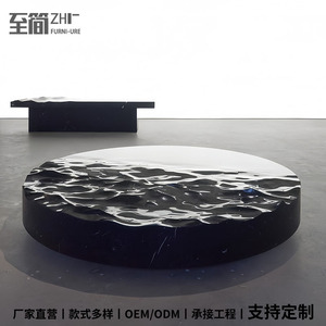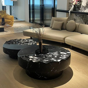 クリエイティブデザイナー水の波紋模造大理石コーヒーテーブルガラス繊維強化プラスチックアートコーヒーテーブル禅正方形ラウンド中国茶テーブル