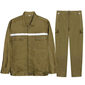 ミリタリーイエローのサマースーツ【反射ストリップ付き】