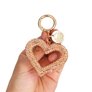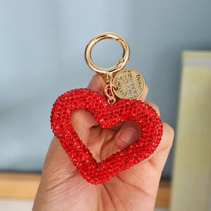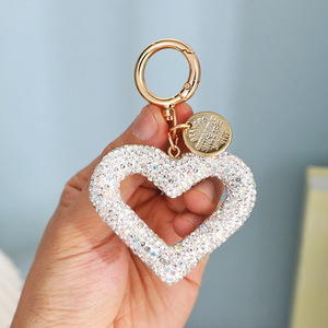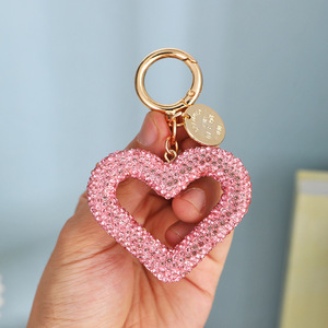 中空フルダイヤモンドピーチハートキーホルダーペンダントダイヤモンドラブカーキーチェーンファッションメタルタグバッグ装飾