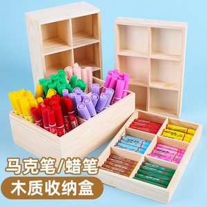 マークペンクレヨン収納ボックスアートエリア幼稚園アートスタジオ木製マルチグリッド多機能無垢材コンパートメントボックス