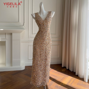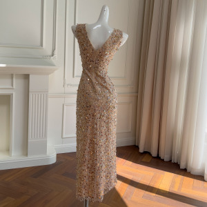 軽くて豪華な名媛風のスパンコールの刺繍のワンピースはスリムに見えます。