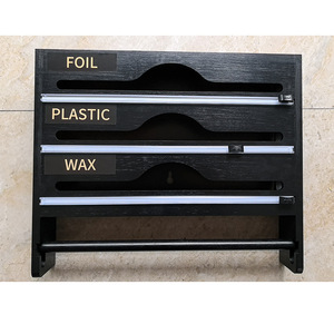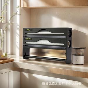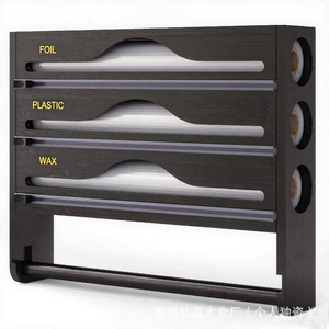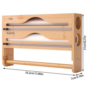 スポット家庭用竹プラスチックラップ収納ボックスキッチンコンビニエンスバッグ錫箔カッター木製壁掛けペーパータオルホルダー
