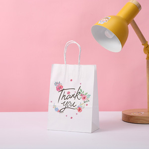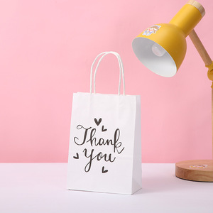 クラフト紙パーティー白プリントギフトバッグの在庫供給工場直販ホリデーポータブルギフトバッグ
