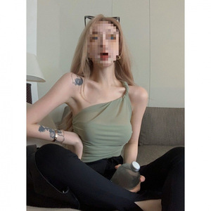 夏デザインニッチボタンオフショルダーメッシュ香港スタイルキャミソールレディースアウタースリムショートホルタートップ