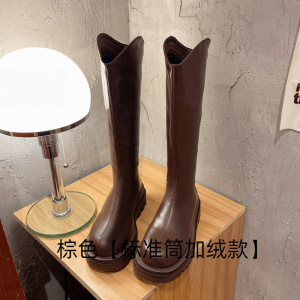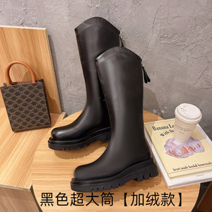 长筒靴女2025秋冬季新款胖mm厚底加绒粗腿大码大筒围长靴子骑士靴