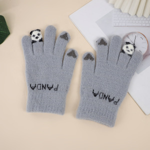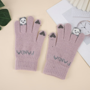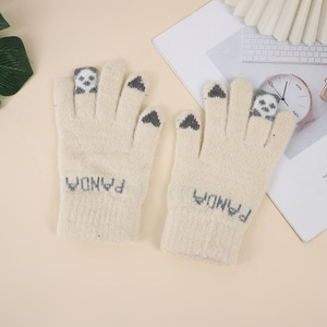秋冬の女性用のかわいいサイクリング手袋、暖かくベルベットで厚く、防寒性のある学生ニットウールのタッチスクリーン5本指手袋