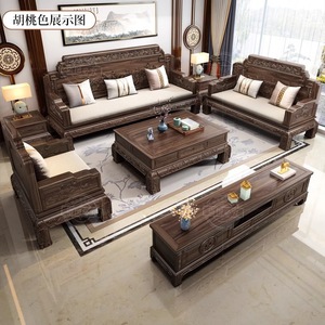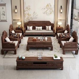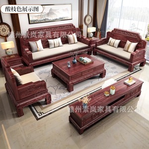 インドネシアローズウッド新中国風無垢材ソファ組み合わせ中国風ヴィラリビングルーム無垢材冬と夏の無垢材ソファ