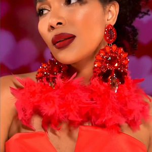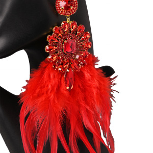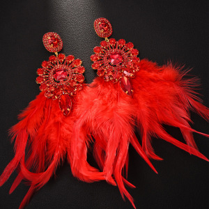 速売通の人気花のドリルのイヤリングのボヘミアン風の復古的な赤い羽のイヤリングの舞台は耳飾りを演じます。