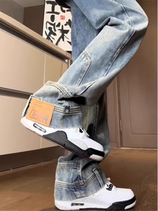 男性用アンダーワンウェイフリルジーンズ 190cm背の高い男性用エクストラロングパンツ アメリカンハイストリートバイブストレートジーンズ