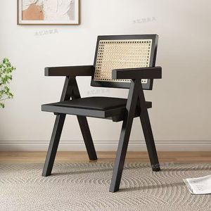 藤編みの椅子の実木の食事の椅子の家庭用の日本式の民宿のベランダのレジャーの藤の椅子のチャンディーガルの柔らかい包みの背もたれの腰掛け