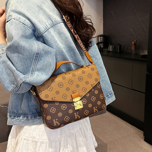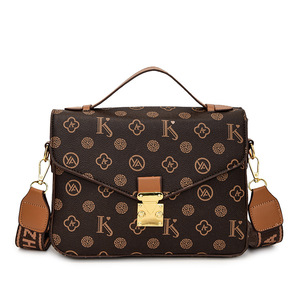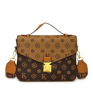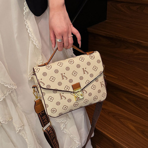 高級感クロスボーダー女性バッグ2025春夏新作百合プリントアルファベット金属ロック質感シングル肩小さい方カバン