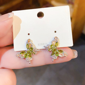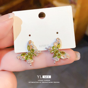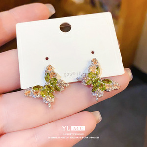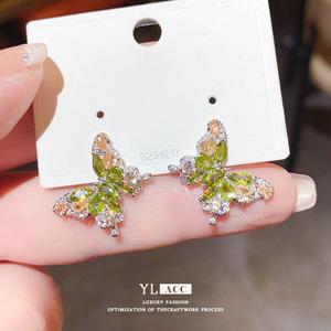 シルバー針スーパーフェアリースタイル絶妙なライトラグジュアリースタイルジルコンバタフライイヤリングパーソナライズされたニッチ気質ハイエンドイヤリング女性用