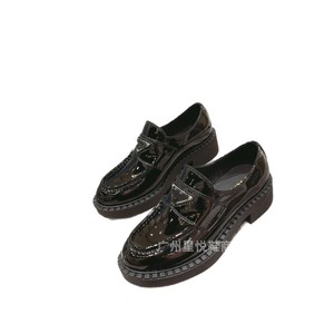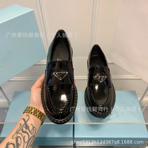 ギアボトムレザートライアングルローファー2025春新作英国風レトロスモールレザーシューズ