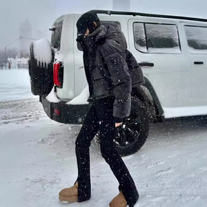 欧货潮牌亮面短款连帽羽绒服女宽松加厚面包服白鸭绒保暖外套潮
