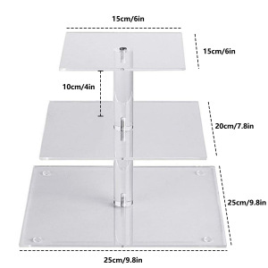 3層正方形アクリルケーキディスプレイスタンドウェディングパーティーフルーツディスプレイスタンドケーキスタンドケーキスタンド