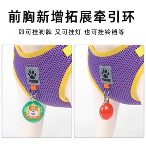 犬の牽引紐のベスト式の中で小型犬が犬のひもを散歩します。