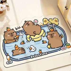 Kapibala 珪藻泥フロアマット吸水速乾浴室フロアマット浴室ドアノンスリップマット漫画足マット