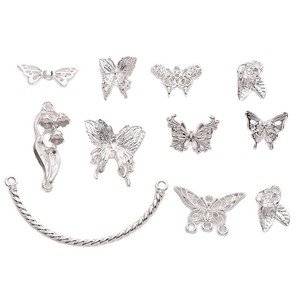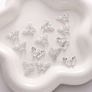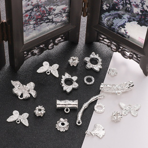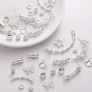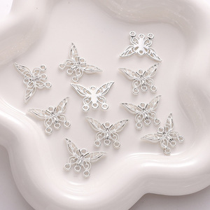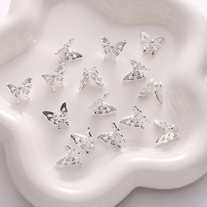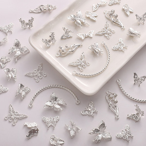 新中式合金竹节手链半镯银色蝴蝶吊坠挂件DIY发簪串珠耳饰品配件