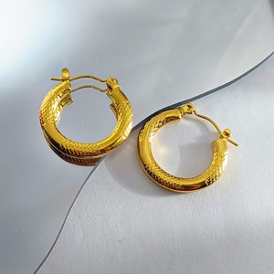 欧米の人気モデルの高級感ステンレスのシンプルな風に合わせた油圧イヤリング18k真金メッキメーカー直販