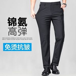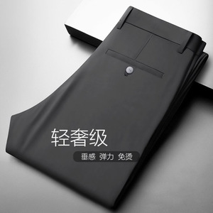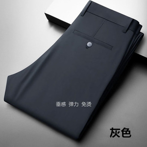 男性のズボンの夏の薄いタイプの氷の糸のズボンのビジネスの高級な軽豪華な紳士服の垂れ下がった感の高い弾の高い腰のまっすぐな筒はしわに抵抗して熱を免除します。
