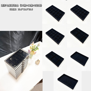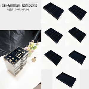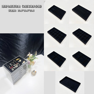 透明グレーと黒の7連ジュエリーボックス[54グリッド+12グリッド+2空のトレイ]
