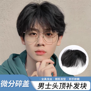 男士假发韩版微分碎盖头顶遮秃补发块真人发丝逼真自然假发片批发