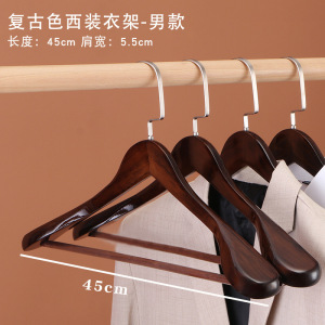 スーツワイドショルダーウッドハンガー-レトロカラーメンズスクエアポール