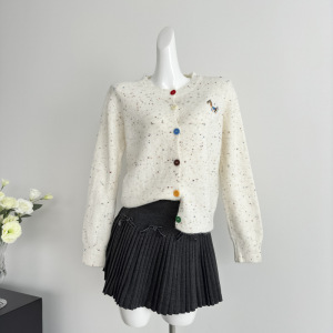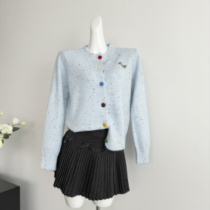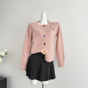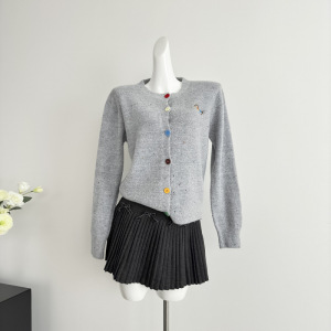 丸首のカーディガンのポニー刺繍ニットのセーター春と秋のコートはゆったりしています。