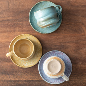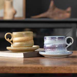 手捏陶器コーヒーカップ&ソーサーセット 日本窯変風 家庭用ウォーターカップ 粗陶カップルマグカップ レトロ
