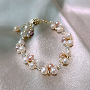 カラフルな淡水パールステッチブレスレット女性デザインクリスタルラップパールネックレスファッションブレスレットネックレスセット
