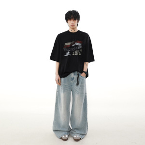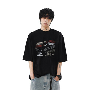 MRNEARLY アメリカンレトロレター半袖Tシャツメンズトレンドブランドカップルゆったりレイジースタイル夏半袖トップス