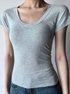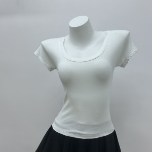 女性用のハイエンドボトムUネックショルダーTシャツ、2025年夏スリムフィットトップ、ホットガールスタイル、半袖、多用途