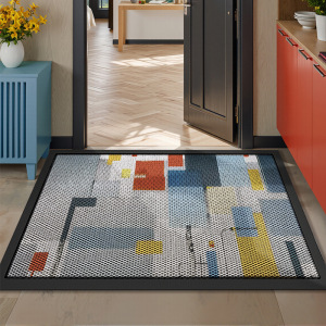简约风家用入户门地垫印花弹力丝玄关进门耐脏耐磨刮沙除尘防滑垫