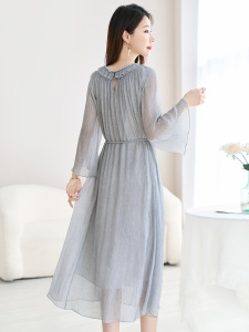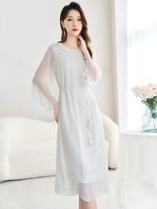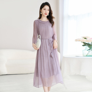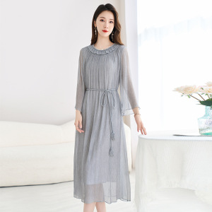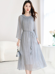【100% 順シルクレディース】高級炒め色気質カジュアル绢糸ワンピースウエスト中ロングスカート9378