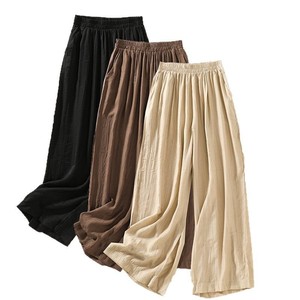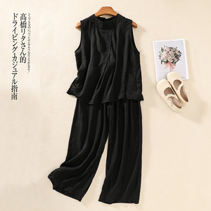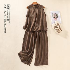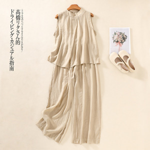 コットンとリネンのスーツ女性のための 2025 新しい夏ラミーノースリーブトップルーズリネンワイドレッグパンツ 2 点セット